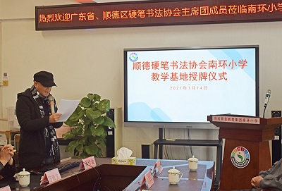 2021年1月14日上午,順德區(qū)硬筆書法協(xié)會在容桂南環(huán)小學(xué)授牌成立硬筆書法教學(xué)基地。