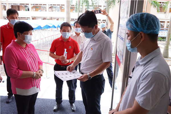 7月2日上午,順德區(qū)區(qū)委副書記、區(qū)政法委書記王勇、區(qū)教育局局長閔樂萍一行到容山中學(xué)開展高考防疫專項督查工作。容山中學(xué)校長、考點主考區(qū)淑玲及相關(guān)行政陪同領(lǐng)導(dǎo)到校園相關(guān)高考功能場室進行巡視。