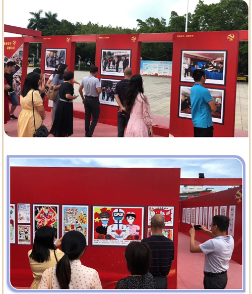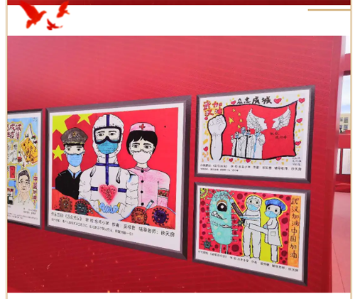 永豐小學(xué)黨支部書記吳凡組織全體黨員來到了展覽區(qū),一起參觀了抗疫工作剪影、抗疫英雄剪影和師生的抗疫主題書畫。偌大的展區(qū),向大家傳達(dá)著戰(zhàn)勝疫情的堅(jiān)定信念和頑強(qiáng)斗志。