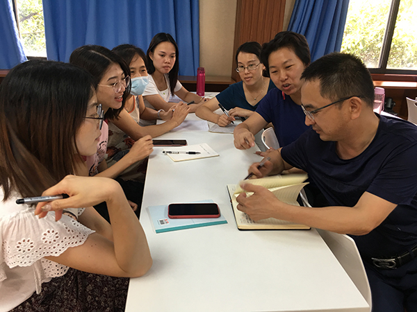夏日炎炎,酷暑難當(dāng),但葉霖佳小學(xué)的老師們學(xué)習(xí)的熱情絲毫不受影響。2020年7月22日下午3:30順德演講與口才協(xié)會(huì)鐘家勤副會(huì)長(zhǎng)結(jié)合在我校蹲點(diǎn)“問診把脈”發(fā)現(xiàn)的問題,百忙中抽空前來為全校老師作“與家長(zhǎng)溝通的藝術(shù)專題”的培訓(xùn)。