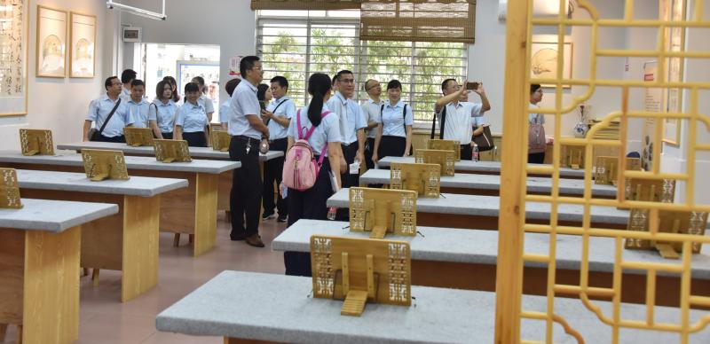 活動第一項:由龔惠志副主任帶領(lǐng)客人參觀校園文化。