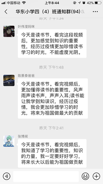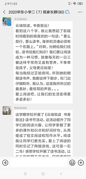 各班家長們也在線上進(jìn)行讀書節(jié)互動