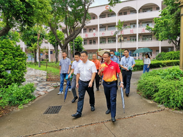 8月13日下午,勒流街道黨工委書記王光、宣傳文體局副局長(zhǎng)郭永添同志以及相關(guān)單位領(lǐng)導(dǎo),在教育局常務(wù)副局長(zhǎng)王家倫同志的陪同下蒞臨我校對(duì)創(chuàng)文工作進(jìn)行視察。