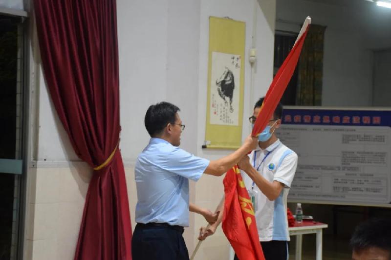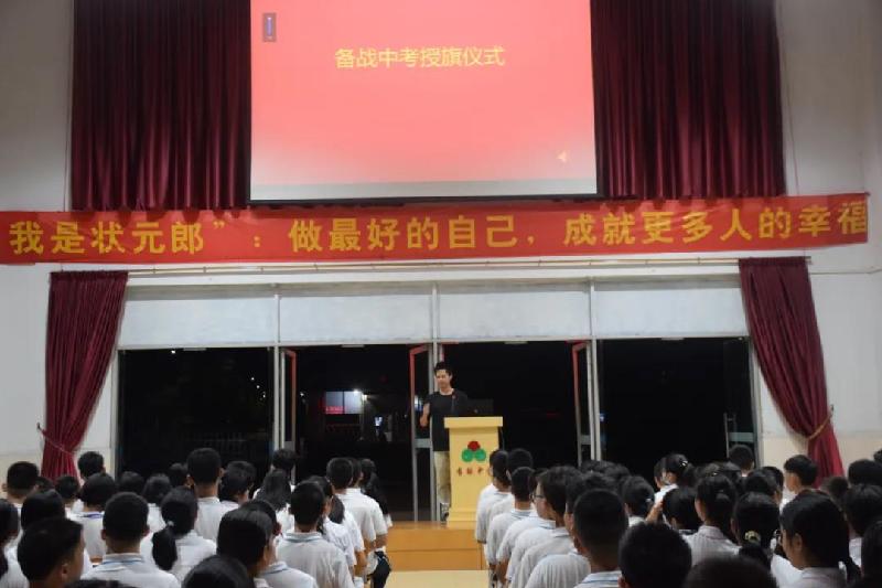 今日,趙平正校長親自為班級(jí)授戰(zhàn)旗,愿初三級(jí)同學(xué)們謹(jǐn)記誓言: “團(tuán)結(jié)一致,永不放棄!志存高遠(yuǎn),扎實(shí)奮戰(zhàn)!永不言累,定要成功!”