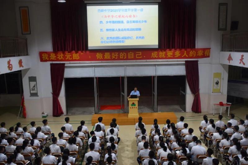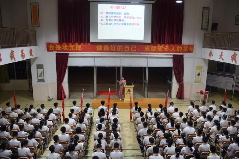 我校趙平正校長引用周恩來名句“為中華之崛起而讀書”,從人類進(jìn)步文化傳承的必然法則、當(dāng)今國際競(jìng)爭、成就自己追求幸福人生、少年強(qiáng)則國強(qiáng)、個(gè)人理想以及師生共存六大方面細(xì)舉例子,為新初三級(jí)同學(xué)們上了開學(xué)第一課,教育學(xué)生們熱愛祖國,熱愛社會(huì)主義,向?yàn)樽鎳睒s昌盛做出貢獻(xiàn)的英雄們學(xué)習(xí)。鼓勵(lì)新初三學(xué)生在學(xué)習(xí)中端正心態(tài),堅(jiān)定奮斗信念,腳踏實(shí)地;啟迪初三學(xué)子,要心懷夢(mèng)想,勇敢追夢(mèng),奮戰(zhàn)中考!