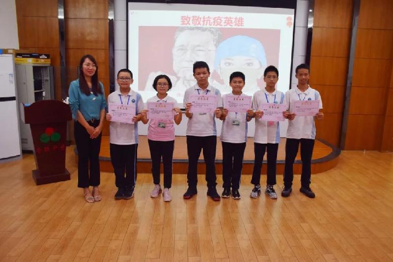 (圖|致敬抗疫英雄活動(dòng)參賽獲獎(jiǎng)學(xué)生和王麗君副主任合影)