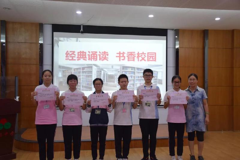 (圖|經(jīng)典誦讀活動(dòng)參賽獲獎(jiǎng)學(xué)生和郭轉(zhuǎn)顏級長合影)
