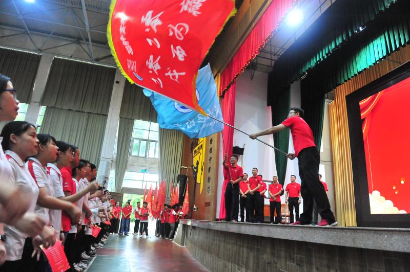 13個(gè)班同時(shí)揮舞起班旗,士氣高漲,壯志壯行!