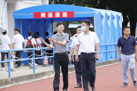 2020年7月2日,順德區(qū)委副書(shū)記、政法委書(shū)記王勇,區(qū)委辦常務(wù)副主任杜友華,順德區(qū)教育局局長(zhǎng)閔樂(lè)萍一行3人蒞臨羅定邦中學(xué),對(duì)2020年高考考點(diǎn)防疫工作開(kāi)展專項(xiàng)督查,我校校長(zhǎng)熊文華帶領(lǐng)學(xué)校行政陪同檢查。