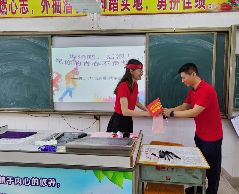 學(xué)校行政領(lǐng)導(dǎo)也隨之走進初三各班級,送上沖刺中考紀念品,為學(xué)生鼓勁加油,這更拉近了師生的距離。