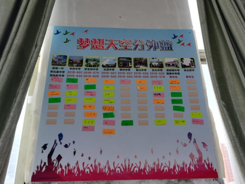 優(yōu)秀在前,指引如燈。同學(xué)們在班主任的指導(dǎo)下認真填好貼在桌面的中考目標紙,并鄭重地把第一志愿貼上中考夢想墻。大部分同學(xué)貼好后,忍不住駐足凝望,仿佛在心中默默為自己鼓勁!