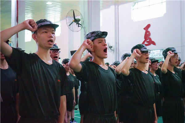 學生代表高一(1)班余瑤帶領全體學生進行軍訓宣誓,鏗鏘的誓言展現(xiàn)了容山學子戰(zhàn)勝困難、圓滿完成軍訓任務的決心。