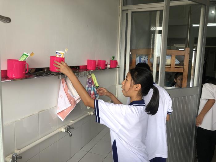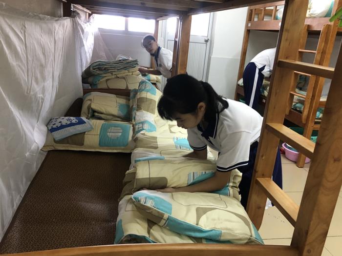 下午,同學(xué)們正式進(jìn)行內(nèi)務(wù)培訓(xùn)和隊列訓(xùn)練。內(nèi)部培訓(xùn)中,生活老師認(rèn)真耐心地教新同學(xué)整理好內(nèi)務(wù)的方法和技巧。為了培訓(xùn)達(dá)到更快更好的效果,各班男女生配備了內(nèi)務(wù)小老師幫忙。