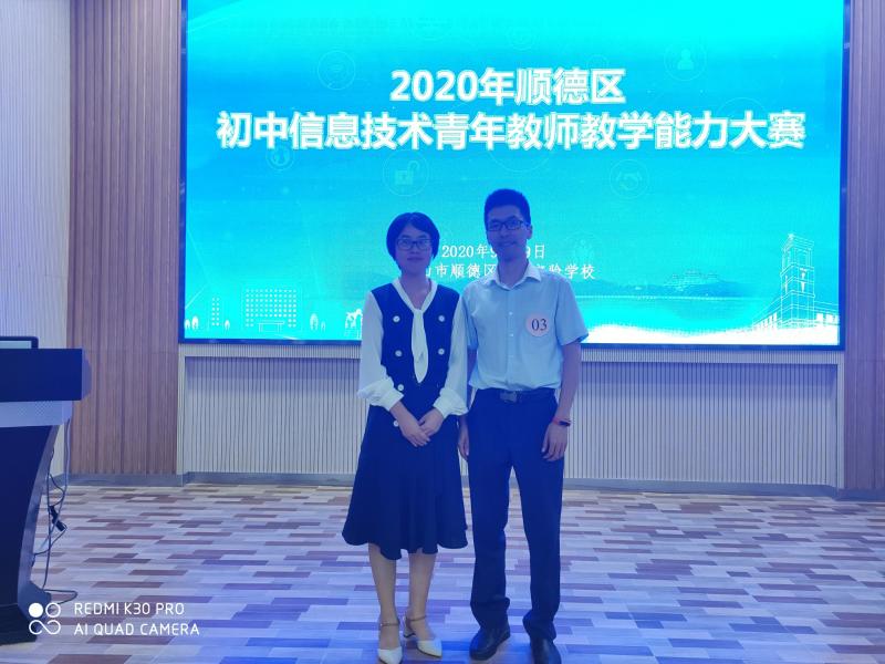 2020年9月29日,順德區(qū)初中信息技術(shù)青年教師教學(xué)能力大賽在鳳城實驗學(xué)校舉行。來自區(qū)內(nèi)各鎮(zhèn)街經(jīng)過選拔出來的21名信息技術(shù)教師代表參加了決賽。最終經(jīng)過緊張且激烈的比拼后,我校的馮偉強老師、艾琪老師獲得了本次比賽的一等獎,馮偉強老師更是將代表順德區(qū)參加佛山市賽!
