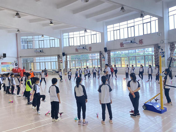 體育方面,田濤老師的授課內(nèi)容是《腳內(nèi)側(cè)踢毽球》,采用學(xué)生喜愛的游戲形式進(jìn)行導(dǎo)入和熱身,充分調(diào)動學(xué)生學(xué)習(xí)的積極性和注意力。本課環(huán)節(jié)設(shè)計(jì)合理層層遞進(jìn),“手持球接力”“踢球入圈比多”等游戲貫穿課程,帶動起學(xué)生們參與課堂的積極性。在練習(xí)中以學(xué)生為主體,積極引導(dǎo)學(xué)生主動思考,創(chuàng)設(shè)小組合作探究解決問題,增加練習(xí)組數(shù),讓學(xué)生能充分的體驗(yàn),真正讓學(xué)生體驗(yàn)到體育帶來的樂趣。