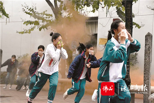 省實(shí)順德學(xué)校防震防火安全應(yīng)急疏散演練現(xiàn)場(chǎng)。/學(xué)校供圖