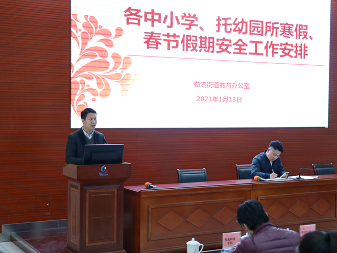 街道教育辦公室甘永杰同志總結(jié)2020年勒流街道第四季度校園安全工作情況,布置各中小學(xué)、托幼園所寒假、春節(jié)假期的安全工作,部署2021年第一季度校園安全工作,部署全街道中小學(xué)、托幼園所學(xué)期末安全巡察工作。