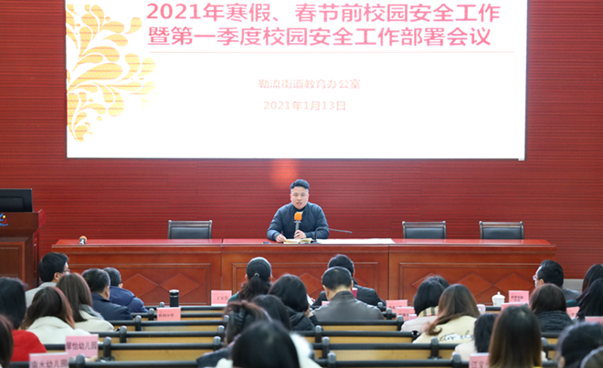 1月13日下午,勒流街道教育辦公室組織的校園安全工作會議在江義中學(xué)曉理廳召開,勒流街道各中小學(xué)校長、托幼園所園長及高職中負責(zé)安全工作行政參加了此次會議。本次會議的重點是部署寒假、春節(jié)校園安全穩(wěn)定工作。