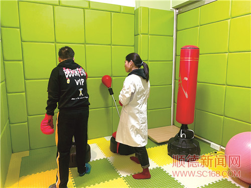 針對不同學員的情況,工場制定了個性化的康復計劃。陳姑娘介紹,面對壓力大,情緒不穩(wěn)定的學員,康復治療師在進行具體的康復評估,了解其具體情況后,為其設定了拳擊訓練,在安全前提下,讓學員通過任意擊打的方式,來進行情緒舒緩;部分學員由于失眠,導致情緒不穩(wěn)定,出現(xiàn)煩躁、心情郁悶的情況,康復治療師則采取音樂治療結合體感音樂治療床進行康復訓練,利用舒適的睡眠環(huán)境和輕快的音樂令學員的情緒得到安穩(wěn),助其入眠;在恒常培訓中,有學員會出現(xiàn)專注力不夠、對工作沒耐心的情況,康復治療師推出堆積木的訓練來提高學員的專注力與耐心;具有情緒障礙的學員同時也會出現(xiàn)急躁、不安的狀態(tài),嚴重影響正常的工作與生活,康復治療師又設置了畫畫訓練課,希望舒緩學員的情緒。