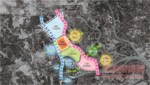 南北整合、東西鏈接,打造一心、兩帶、三區(qū)。